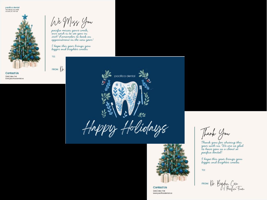 We are creating a warm holiday campaign to strengthen our relationships with patients and encourage those who haven’t visited us in a while to come back. We will send personalized Christmas or New Year postcards to two groups: patients who came in this year will get a “Thank you for sharing this year with us” message to show our appreciation, while patients who haven’t visited recently will receive a friendly message like “We miss you, our wish is to see you in 2026,” inviting them back gently. This campaign focuses on building emotional connections and thoughtful communication, helping us maintain long-term relationships and naturally encouraging future appointments.
