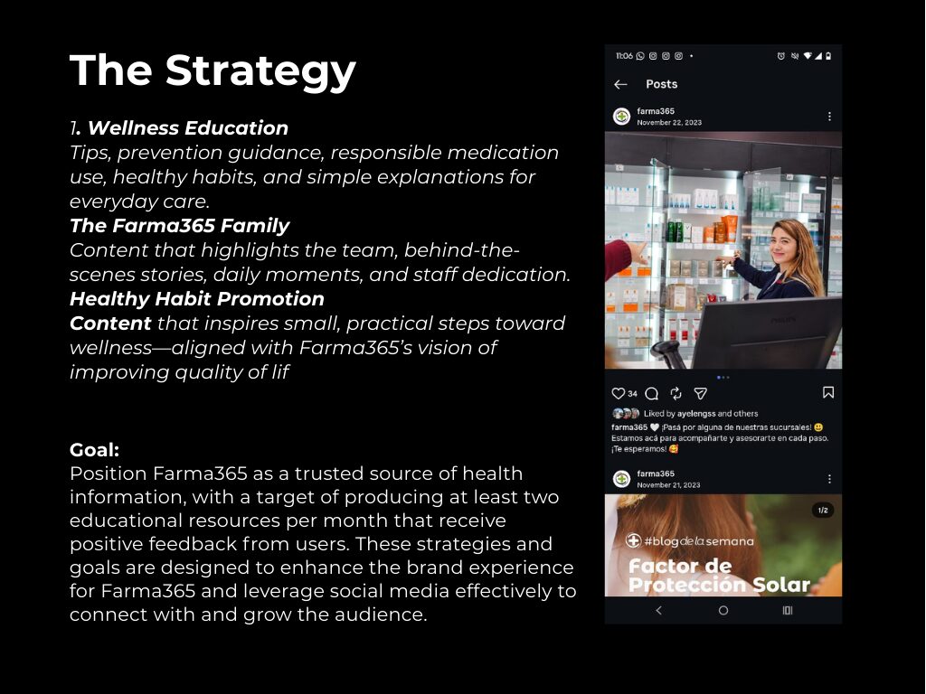 Farma365 aspired to enhance its brand voice and content strategy by aligning with the Caregiver archetype, which emphasizes care, empathy, and community. To achieve this, a comprehensive social media strategy was developed that highlighted the company’s mission, values, promotions, product education, and team culture. This included defining the brand archetype, establishing a consistent tone of voice with appropriate emojis, content categories, and hashtags, and creating feed templates, photo guidelines, and storytelling frameworks. As a result, Farma365 achieved a more cohesive brand identity, expanded its content pillars to focus on education, empathy, and community, and improved clarity for execution teams.